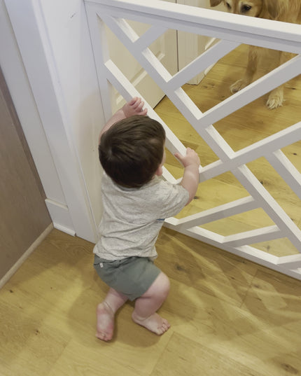 Custom Wooden Geometric Safety Gate – Handmade Baby, Pet & Stair Gate – Choose Size, Style & Color